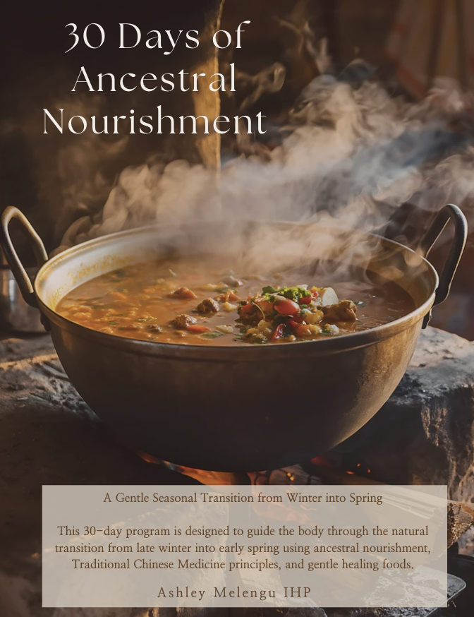 It is the season to restore.30 Days of Ancestral Nourishment is a month-long, very gentle program designed to rebuild the body after stress, restriction, illness, depletion, and the demands of child-rearing. This work is rooted in ancestral wisdom and traditional medicine, honoring how women have nourished themselves through winter for generations.